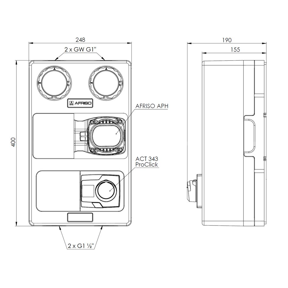 Grupa pompowa AFRISO PrimoTherm K 180-2 DN 25 AP 3-WM-R GZ x GW 1 1/2'' x 1'', z zaworem mieszającym, z izolacją, z pompą obiegową AFRISO APH 361 25-7/180 mm