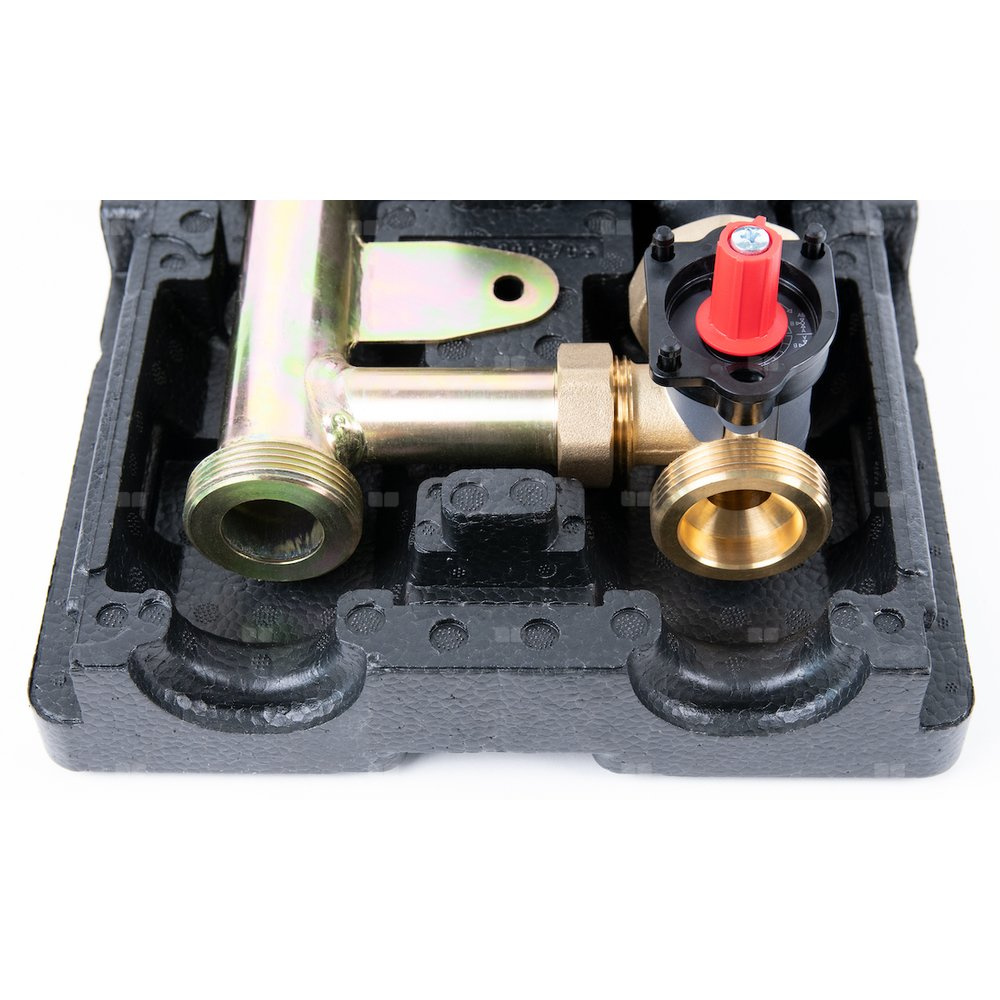 Wyposażona w niezbędne komponenty: termometry, zawór zwrotny, zawory odcinające na zasilaniu i powrocie i izolację termiczną.