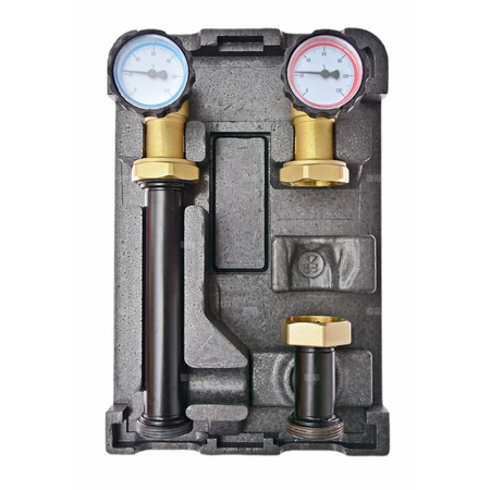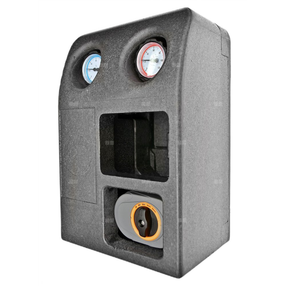 Grupy pompowe grzejnikowe QIK – bez pompy służą do dystrybucji czynnika grzewczego, w instalacjach centralnego ogrzewania. Stosowane są głównie do zasilania systemów grzewczych, bez konieczności obniżenia temperatury czynnika, dystrybuowanego ze źródła ciepła. Idealnie współpracują w połączeniu z rozdzielaczami hydraulicznymi QIK i sprzęgło-rozdzielaczami hydraulicznym. Wyposażenie: izolacja termiczna EPS, zawory z termometrami tarczowymi. Przyłącze 6/4” GZ, wyjście do instalacji 1” GW. Rozstaw przyłączy 125mm. Wymiary zewnętrzne: wysokość 375mm, szerokość 245mm, głębokość 173mm.