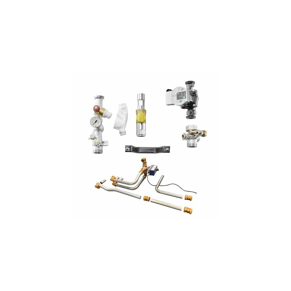 Grupa pompowa z zewnętrznym zaworem 3-drogowym do przygotowania ciepłej wody użytkowej przez pierwszy kocioł jednostki kaskadowej przez zawór 3-drogowy do kotła GC7000WP