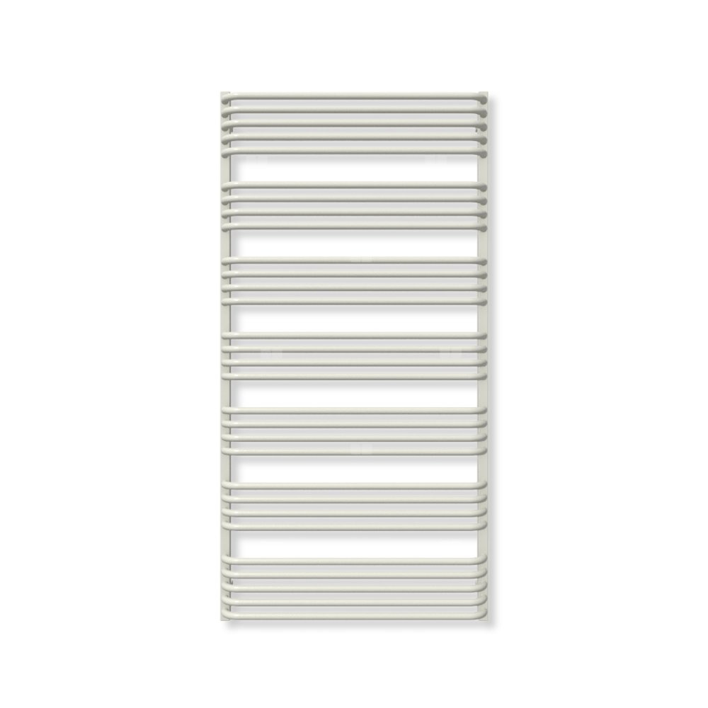 Klasyczny grzejnik łazienkowy zbudowany z kolektorów o przekroju prostokąta połączonych za pomocą wygiętych rurek. Rurki typu "C" oraz zachowanie przestrzeni między sekcjami ułatwiają zawieszenie ręczników, dzięki czemu Alex dobrze sprawadza się zarówno w roli ogrzewacza pomieszczeń jak i suszarki.