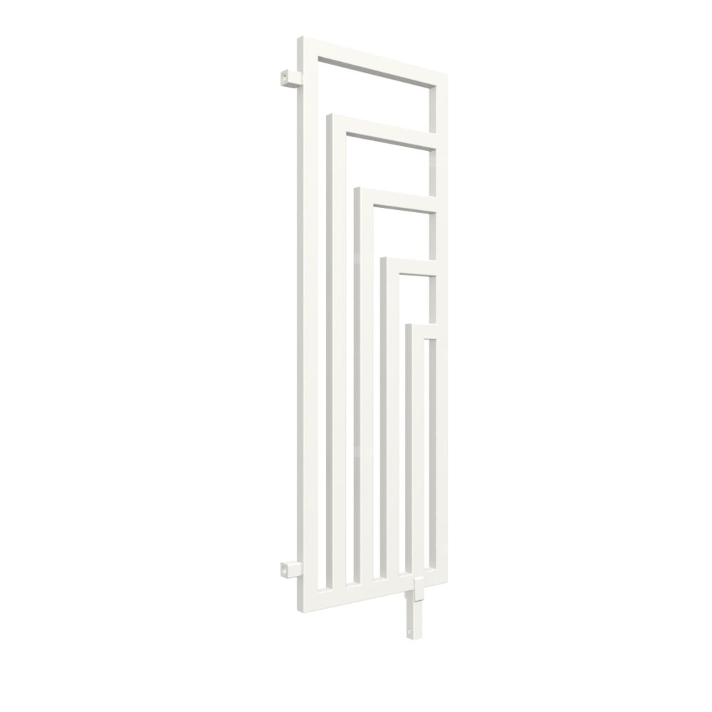 Prostopadły układ grzejnika w wersji ściany działowej sprzyja lepszemu obiegowi ciepła, jednocześnie pozwalając w nieformalny sposób wydzielić strefy w projektowanej przestrzeni.Geometryczny układ rur grzejnika Angus wprowadza do wnętrza ład i nadaje mu nowoczesnego charakteru.