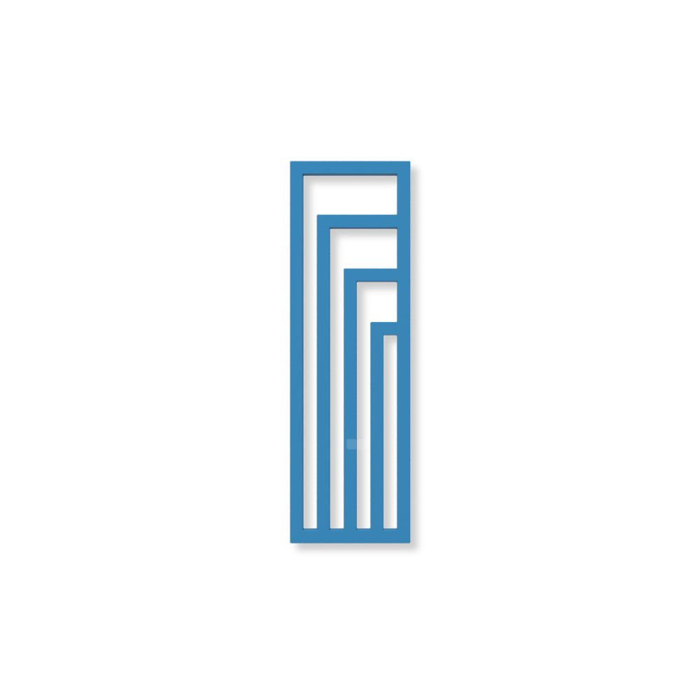 Grzejnik elektryczny TERMA ANGUS V 1140 x 360 mm, kolor niebieski średni RAL5015, moc 400 W, podłączenie E1, kabel prosty bez wtyczki z maskownicą