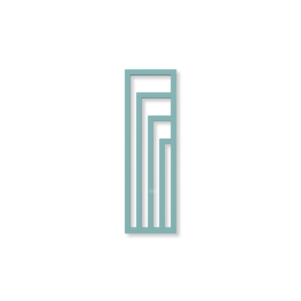 Grzejnik elektryczny TERMA ANGUS V 1140 x 360 mm, kolor turkusowy pastelowy RAL6034, moc 400 W, podłączenie E1, kabel prosty bez wtyczki z maskownicą
