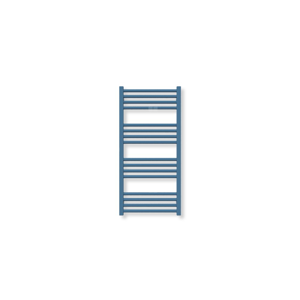 Grzejnik elektryczny TERMA FIONA 900 x 430 mm, kolor niebieski brylantowy RAL5007, moc 400 W, podłączenie E8, kabel prosty bez wtyczki z maskownicą szary