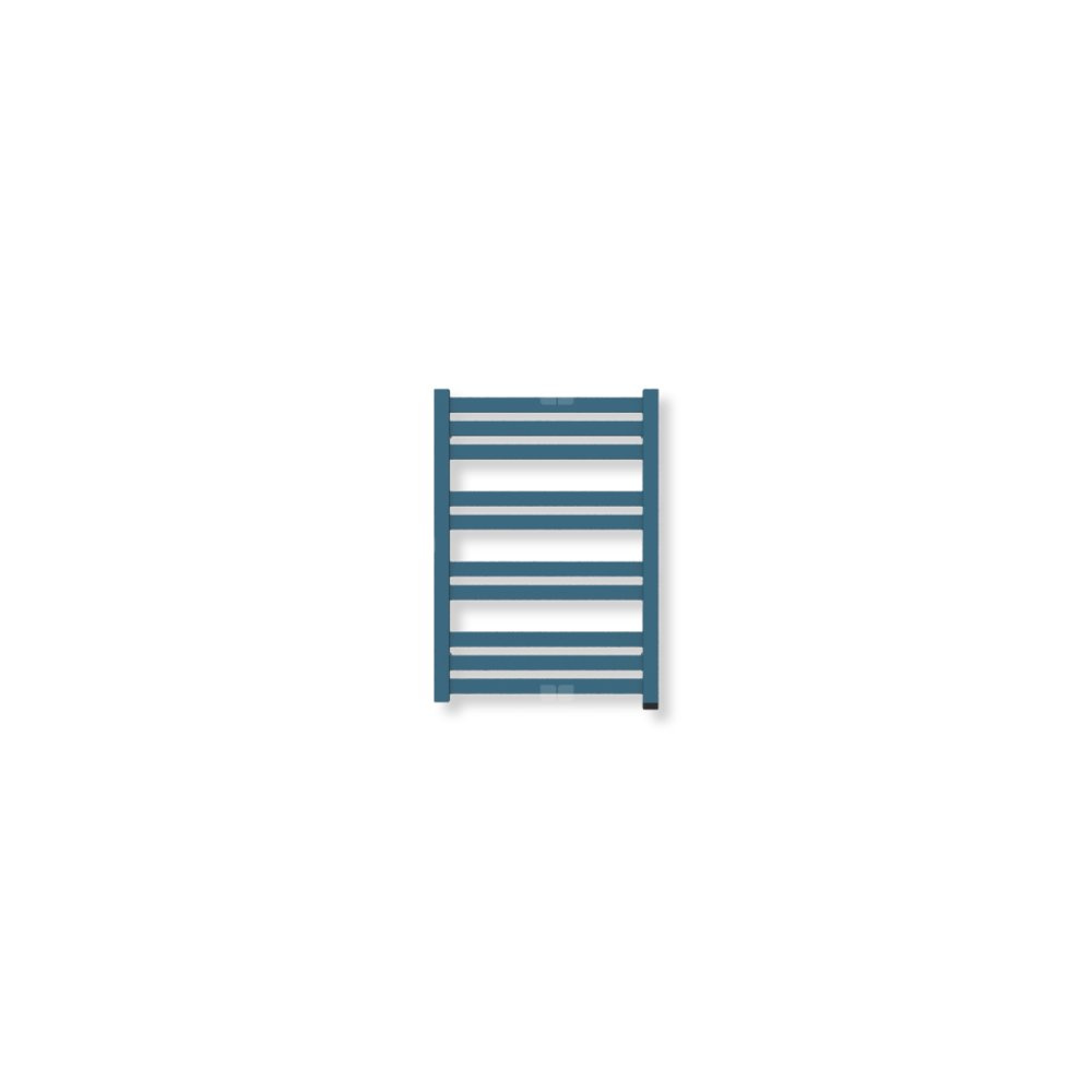 Grzejnik elektryczny TERMA MARLIN ONE 600 x 430 mm, kolor niebieski lazurowy RAL5009, moc 300 W, podłączenie E8, kabel prosty bez wtyczki szary