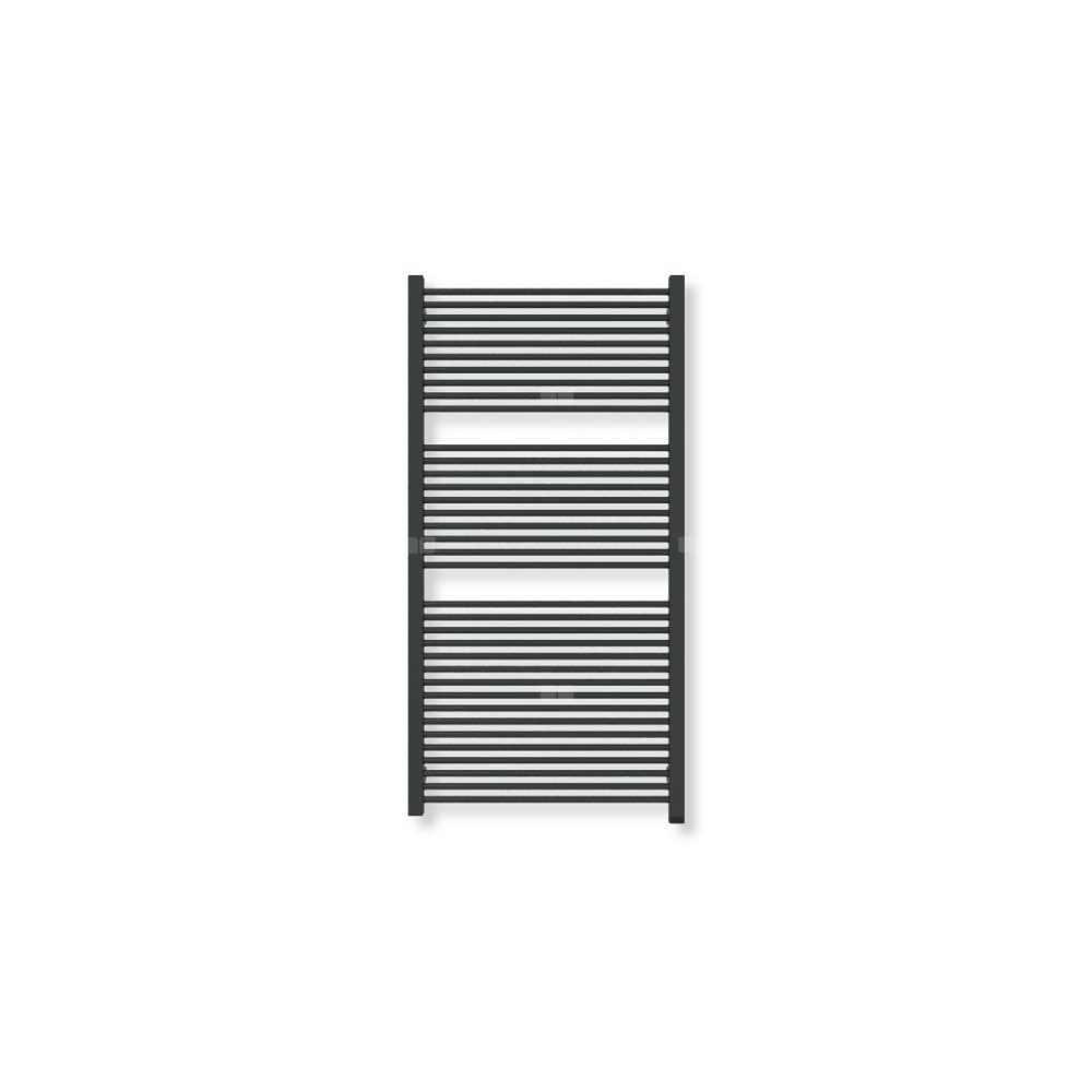 Grzejnik elektryczny TERMA MIKE ONE 1030 x 530 mm, kolor czarny jak kruk mat RAL9005, moc 600 W, podłączenie E8, kabel spiralny z wtyczką szary