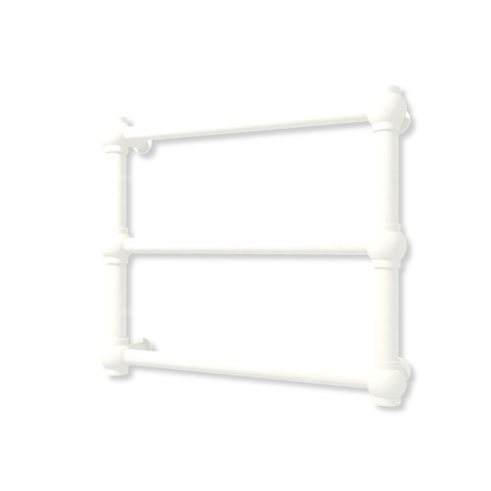 Bryła grzejnika została skonstuowana z rur o przekroju koła oraz stalowych kul. Całość tworzy formę charakterystyczną dla stylu retro.