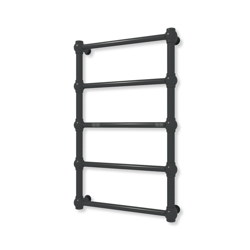Bryła grzejnika została skonstuowana z rur o przekroju koła oraz stalowych kul. Całość tworzy formę charakterystyczną dla stylu retro.