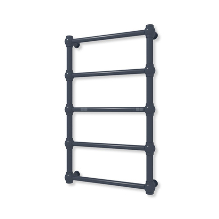 Bryła grzejnika została skonstuowana z rur o przekroju koła oraz stalowych kul. Całość tworzy formę charakterystyczną dla stylu retro.