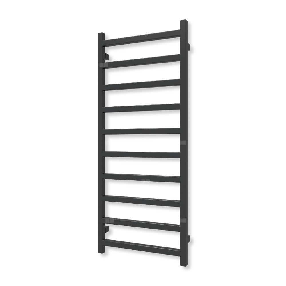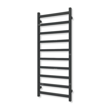 Grzejnik elektryczny TERMA SIMPLE 1200 x 500 mm, kolor czarny jak kruk mat RAL9005, moc 400 W, podłączenie E8, kabel prosty bez wtyczki z maskownicą czarny