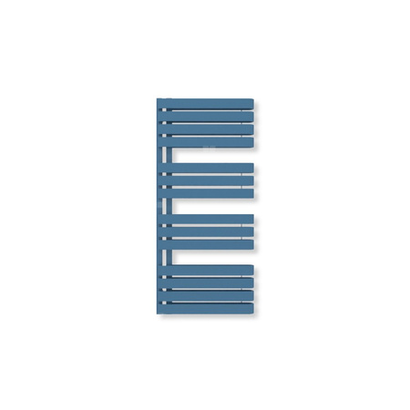 Grzejnik elektryczny TERMA WARP S 1110 x 500 mm, kolor niebieski brylantowy RAL5007, moc 800 W, podłączenie E8, kabel spiralny z wtyczką srebrzysty