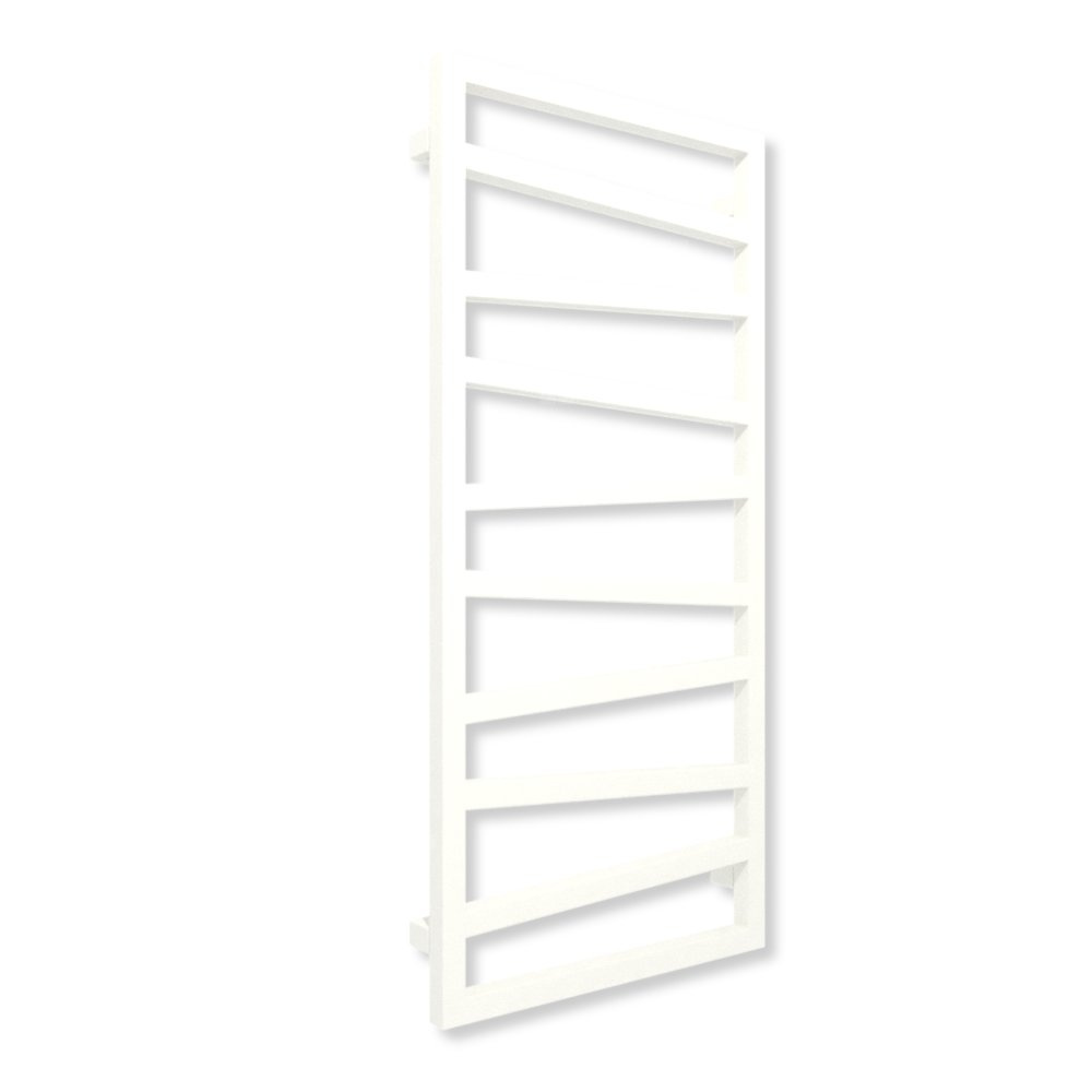 Nowoczesny grzejnik zbudowany ze zlicowanych ze sobą rur o przekroju kwadratu. Płaska forma o niesymetrycznie ułożonych profilach przyciąga wzrok i stanowi oryginalny element łazienki.