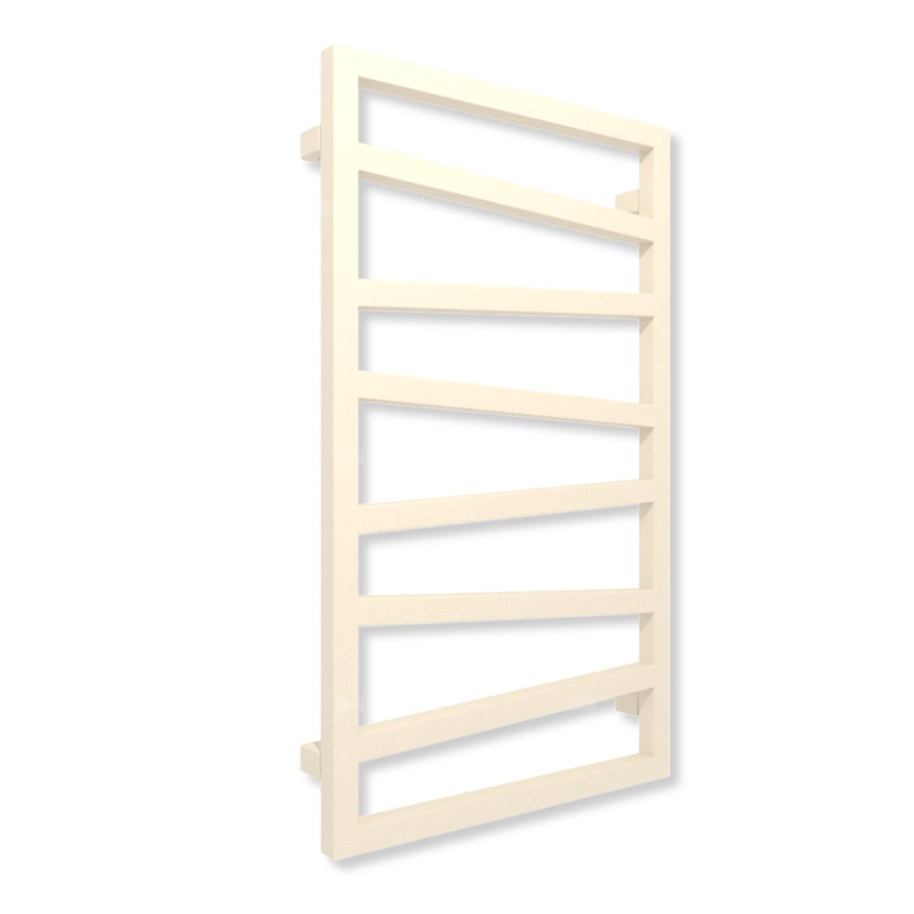 Nowoczesny grzejnik zbudowany ze zlicowanych ze sobą rur o przekroju kwadratu. Płaska forma o niesymetrycznie ułożonych profilach przyciąga wzrok i stanowi oryginalny element łazienki.