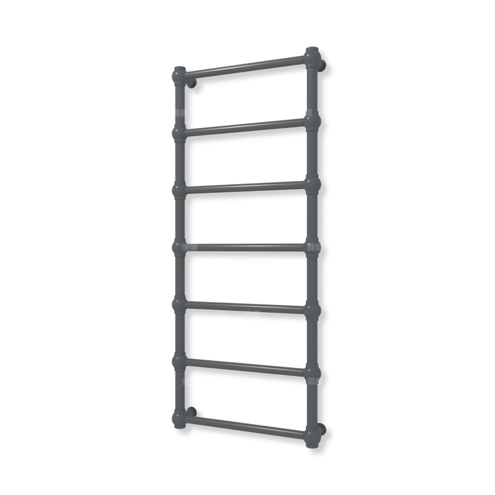 Bryła grzejnika została skonstuowana z rur o przekroju koła oraz stalowych kul. Całość tworzy formę charakterystyczną dla stylu retro.