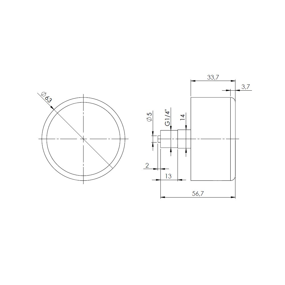 Ciśnieniomierz różnicowy AFRISO KP D211 0/40 mbar mosiądz G1/4B aksjalne fi 63, kl. 1.6%