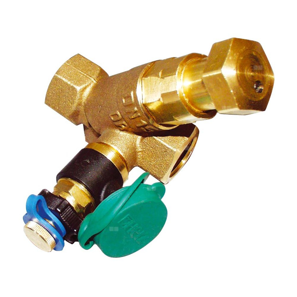 Ogranicznik temperatury cyrkulacji HERZ-ZTB do urządzeń ciepłowniczych. Termostatyczny zawór dławiący do instalacji cyrkulacyjnych wody użytkowej z pompą obiegową w formie regulatora proporcjonalnego bez wspomagania obcą energią. Figura skośna,