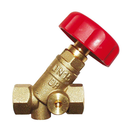 Strömax-AD, zawór odcinający, figura skośna, model z długą mufą gwintowaną, 2 nawiercone otwory, nowe wykonanie. Wykonanie jak STROMAX-D, dodatkowo 2 nawiercone otwory i 1 korek.