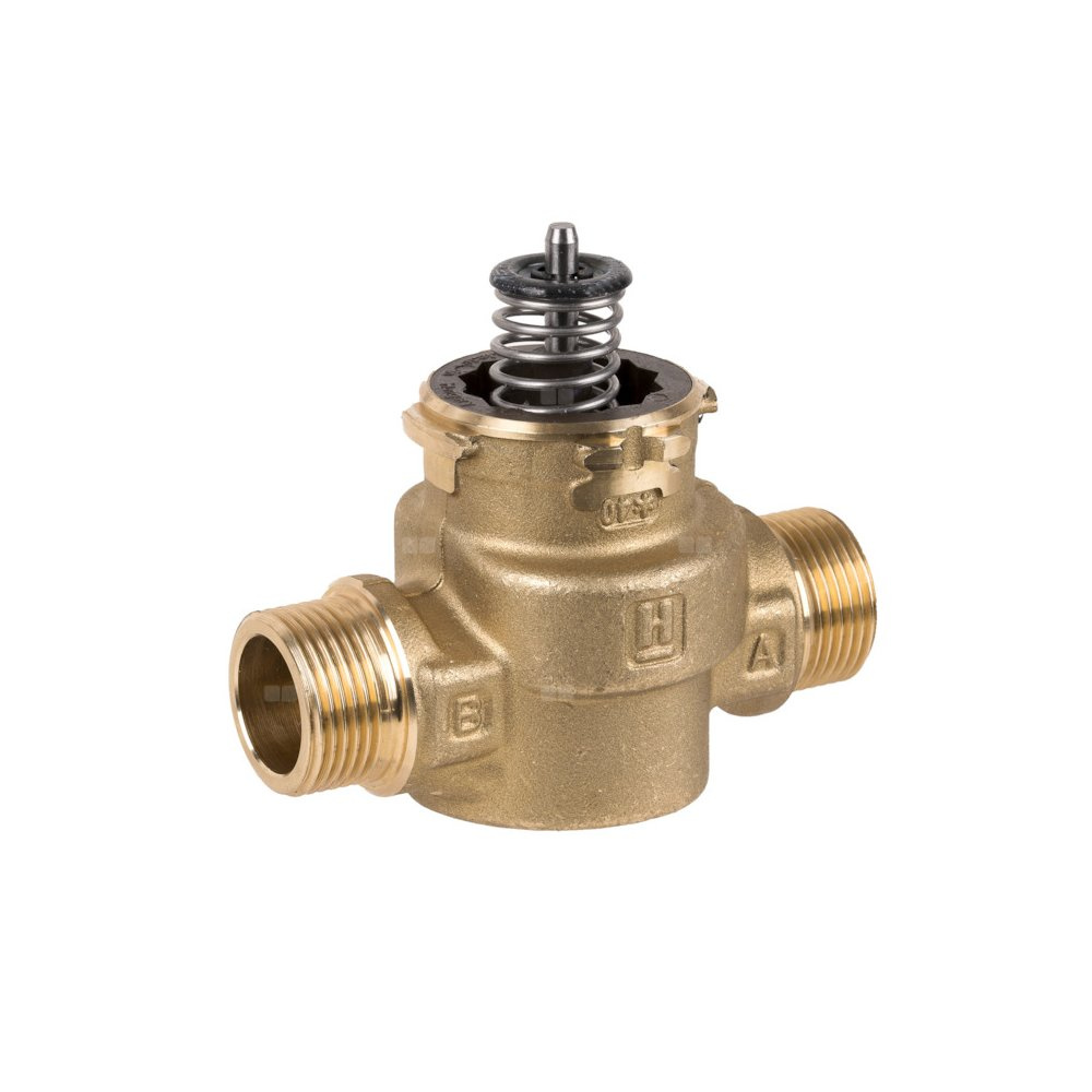 Zawory typu VC ze sterowaniem dwupołożeniowym stosowane są do sterowania przepływem wody gorącej/ chłodzącej w instalacjach grzewczych/chłodzących w instalacjach domowych oraz małych obiektach komercyjnych. Składają się z siłownika, zaworu i wkładki aworowej Zawory 2- drogowe są stosowane jako zawory przelotowe w aplikacjach ze sterowaniem strefowym, natomiast zawory 3- drogowe jako zawory dzielące. Obie wersje mogą sterować pojedynczym klimakonwektorem, grzejnikiem, podgrzewaczem lub konwektorem. W zależności od modelu napędu zawory mogą być sterowane regulatorami ze stykami rozwiernymi SPST lub zwierno-rozwiernymi SPDT stosowanych w termostatach pokojowych, termostatach zanurzeniowych i przylgowych. Zawory serii VC dzięki sinusoidalnemu skokowi napędu pozwalają na cichą pracę i zmniejszają efekt uderzenia hydraulicznego. Napęd pobiera zasilanie tylko podczas przemieszczania się zaworu do wymaganej pozycji. Napęd można zdemontować z zaworu bez wpływu na działanie systemu. Wszystkie wersje siłowników współpracują z dowolnym modelem zaworu serii VC. Umożliwia to wysoką elastyczność w montażu przy różnych modelach kotłów oraz przy konserwacji. Konstrukcja tłoka zaworu zapewnia uszczelnienie niezależnie od ciśnienia różnicowego powstałego na zaworze. W zaworze 2-drogowym przepływ można realizować w obu kierunkach. W zaworze 3-drogowym, dzielącym przepływ może występować zarówno z AB do A lub B, jak i z A lub B do AB.