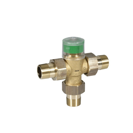 Bardzo czuły element termiczny umieszczony na wejściu zaworu steruje trzpieniem regulującym proporcje przepływu gorącej i zimnej wody, tak aby wymieszana woda miała temperaturę wybraną na pokrętle nastawczym. Na wejściach zimnej i gorącej wody zastosowano miękkie uszczelnienie umożliwiające:
