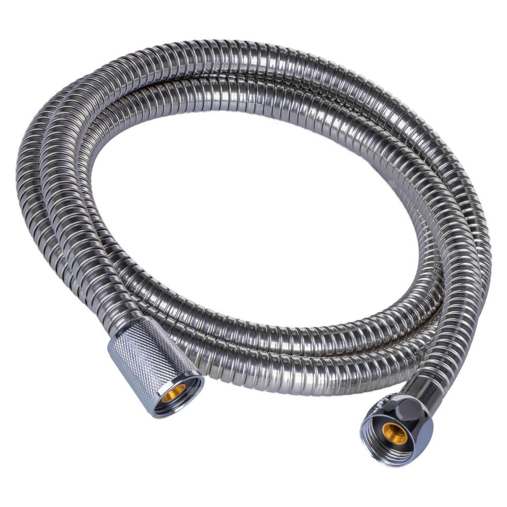 Rozciągany wąż prysznicowe ze stali nierdzewnej, z podwójnym zabezpieczeniem. Dostępny w długościach 1000 mm, 1200 mm, 1500 mm i 1750 mm.