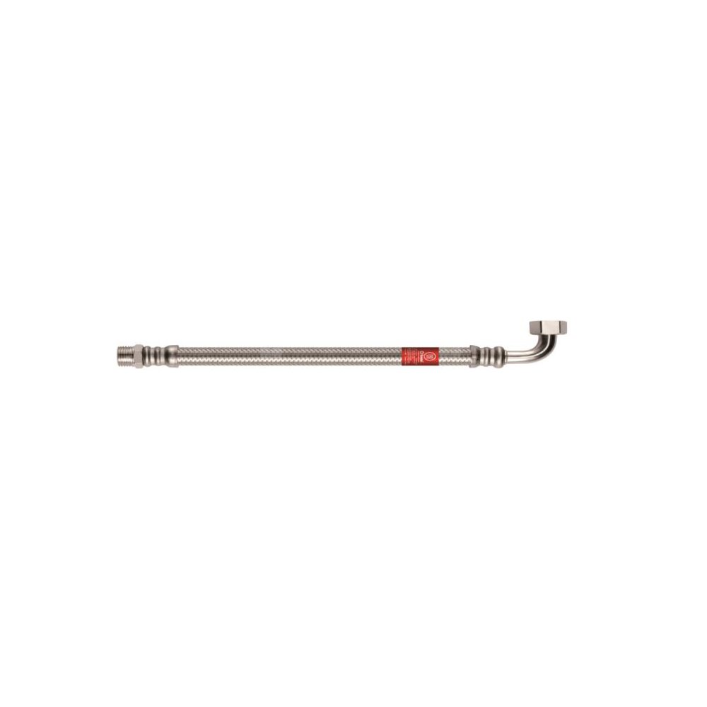 Przyłączeniowy wąż do wody (kolanko), w oplocie ze stali nierdzewnej , przeznaczony do montażu w systemach sanitarnych i hydraulicznych