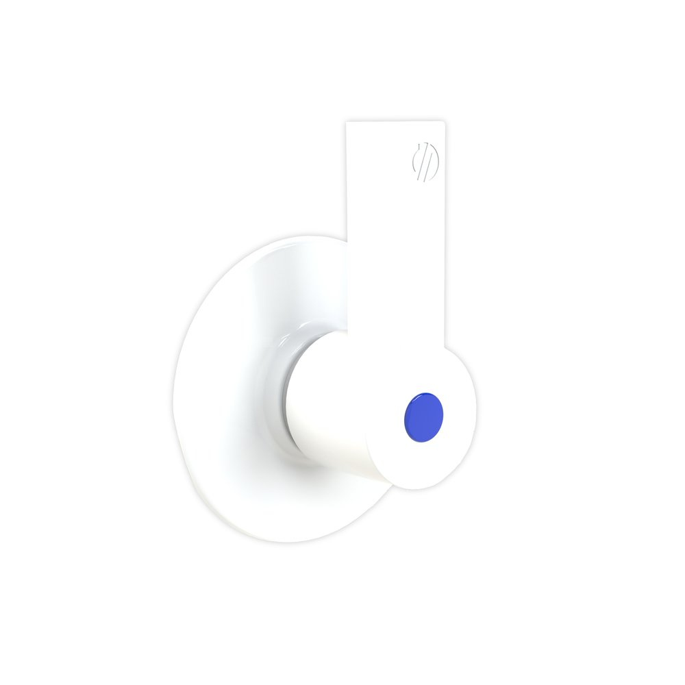 Nowe białe i czarne pokrętła zaworów podtynkowych TEXAS, wykonane z wysokiej jakości znalu, wyposażone w czerwone i niebieskie oznaczenia.
