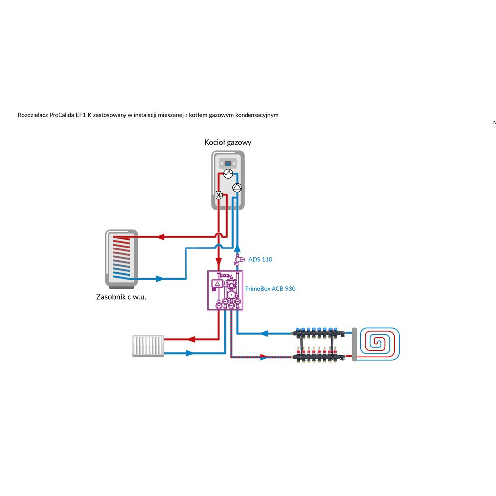 Rozdzielacze poliamidowe ProCalida EF1 K stosuje się w instalacjach ogrzewania lub chłodzenia płaszczyznowego. Montowane są głównie w szafkach umieszczonych w ścianach budynku, skąd rozprowadzają ciepło ze źródła do poszczególnych pętli instalacji płaszczyznowej. Możliwy jest również montaż pod stropem w instalacjach sufitowych. Z ich pomocą reguluje się ilość ciepła kierowaną do konkretnych pomieszczeń, napełnia, opróżnia oraz odpowietrza instalacje płaszczyznowe. Połączone z systemami sterowania FloorControl lub CosiTherm i siłownikami termoelektrycznymi TSA zapewniają stale komfortową temperaturę w każdym z pomieszczeń.