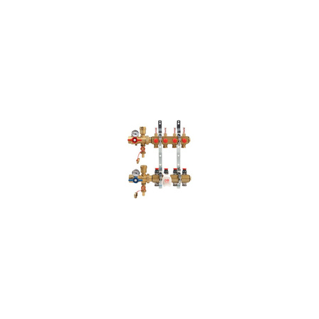 Rozdzielacz do ogrzewania podłogowego GIACOMINI R553FKDB 7-obieg. mosiądz 1'' x GZ metryczny 18 + przepływomierz + termometr + zawór napełn/spust + odpowietrznik + zawór przy przyłączu