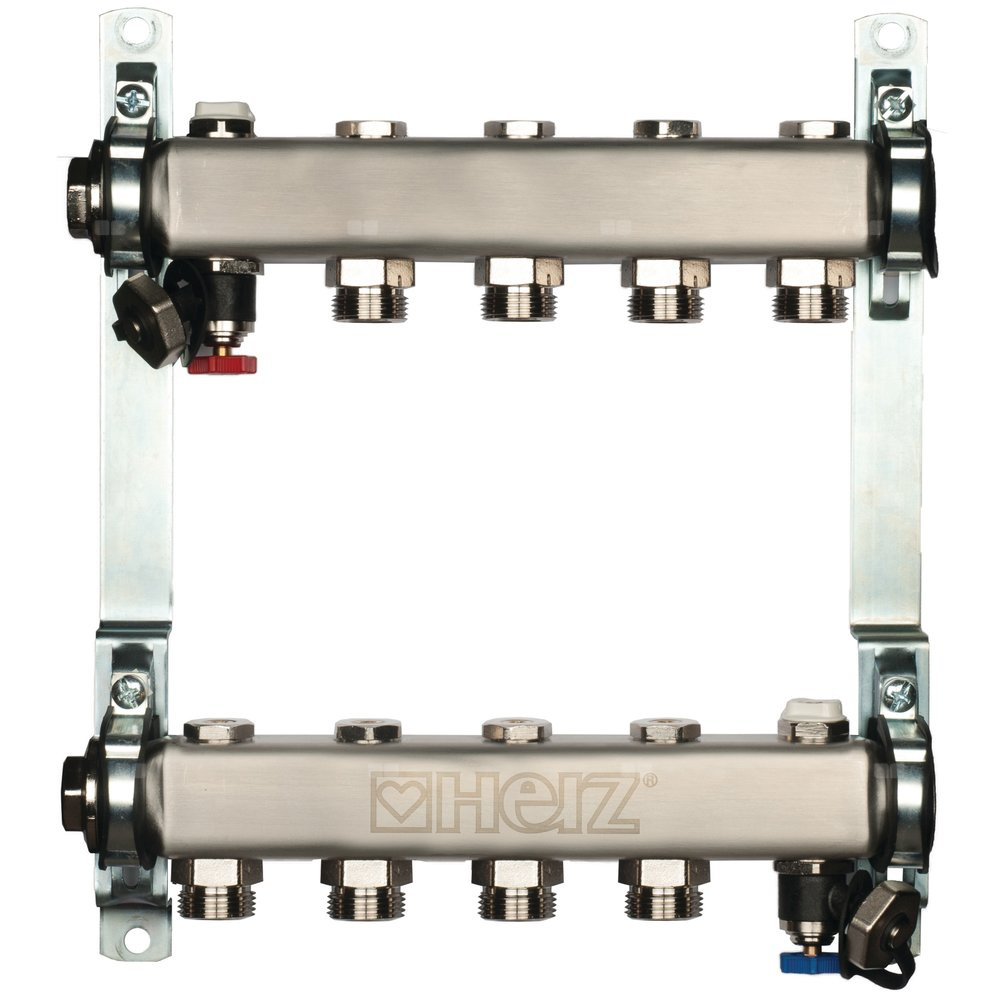 Rozdzielacz do ogrzewania podłogowego HERZ 12-obieg. stal nierdzewna GW 1'' x GZ 3/4'' + zawór napełn/spust + odpowietrznik