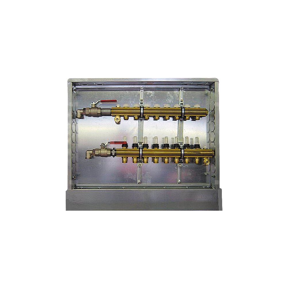 Rozdzielacz do ogrzewania podłogowego HERZ 9-obieg. mosiądz GW 1'' x GZ 3/4'' + przepływomierz + zawór napełn/spust + odpowietrznik + zawór przy przyłączu