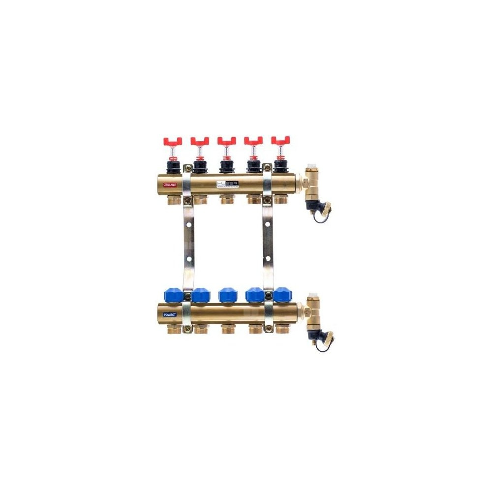 Rozdzielacz do ogrzewania podłogowego QIK PC BASIC II 7-obieg. mosiądz GW 1'' x GZ 3/4'' + przepływomierz