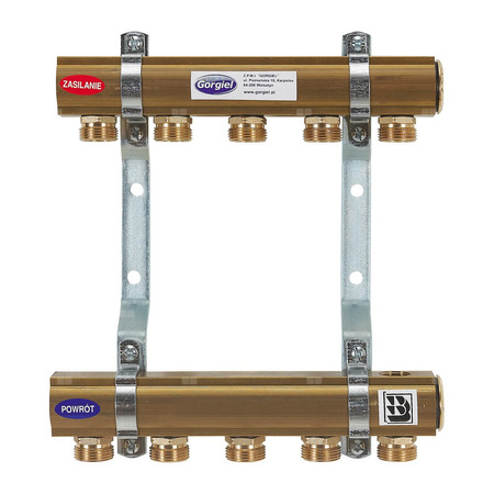 Wysokość: 290 mm, Szerokość: 255 mm, Głębokość: 75 mm, Ilość sekcji: 5, Rozdzielacz mosiężny z nyplami 1/2" x 3/4"