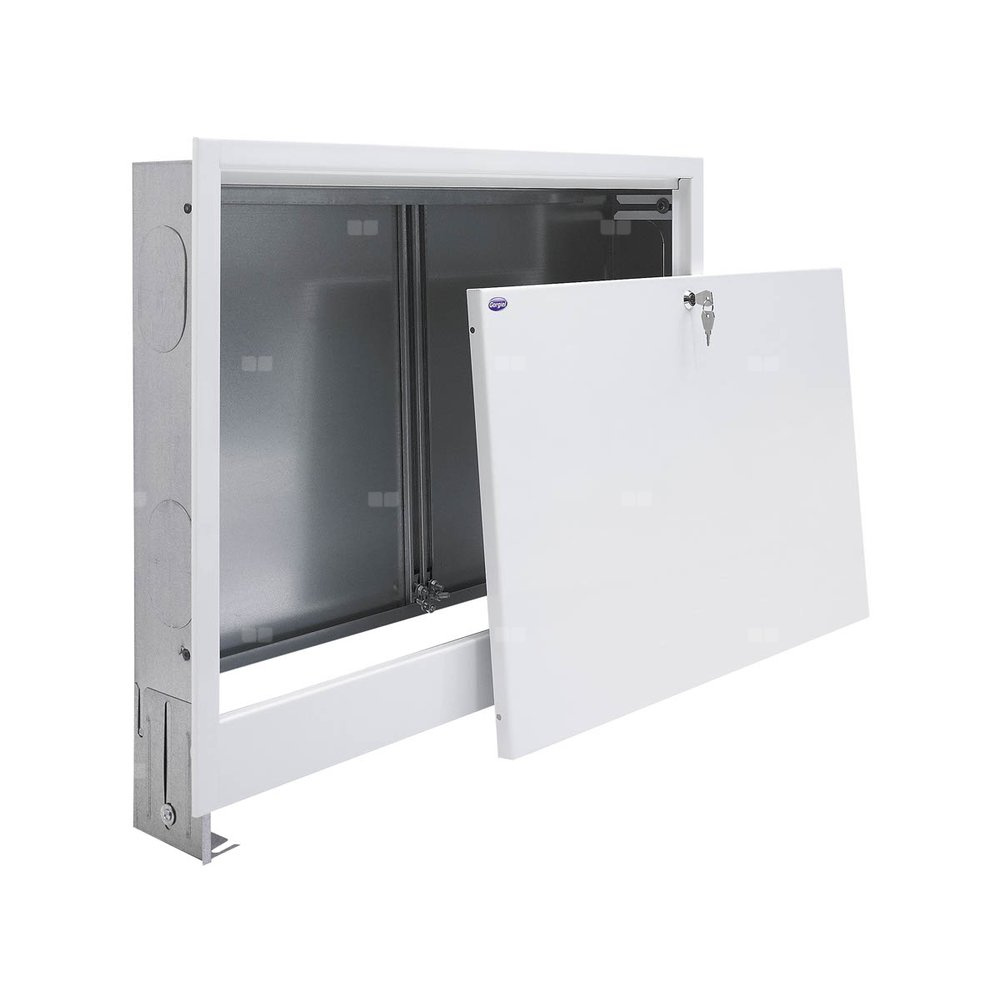 Wysokość: 575-665 mm, Szerokość: 715 mm, Głębokość: 110-175 mm, Ilość sekcji: 10, Szafka podtynkowa do rozdzielaczy C.O. i ogrzewania podłogowego