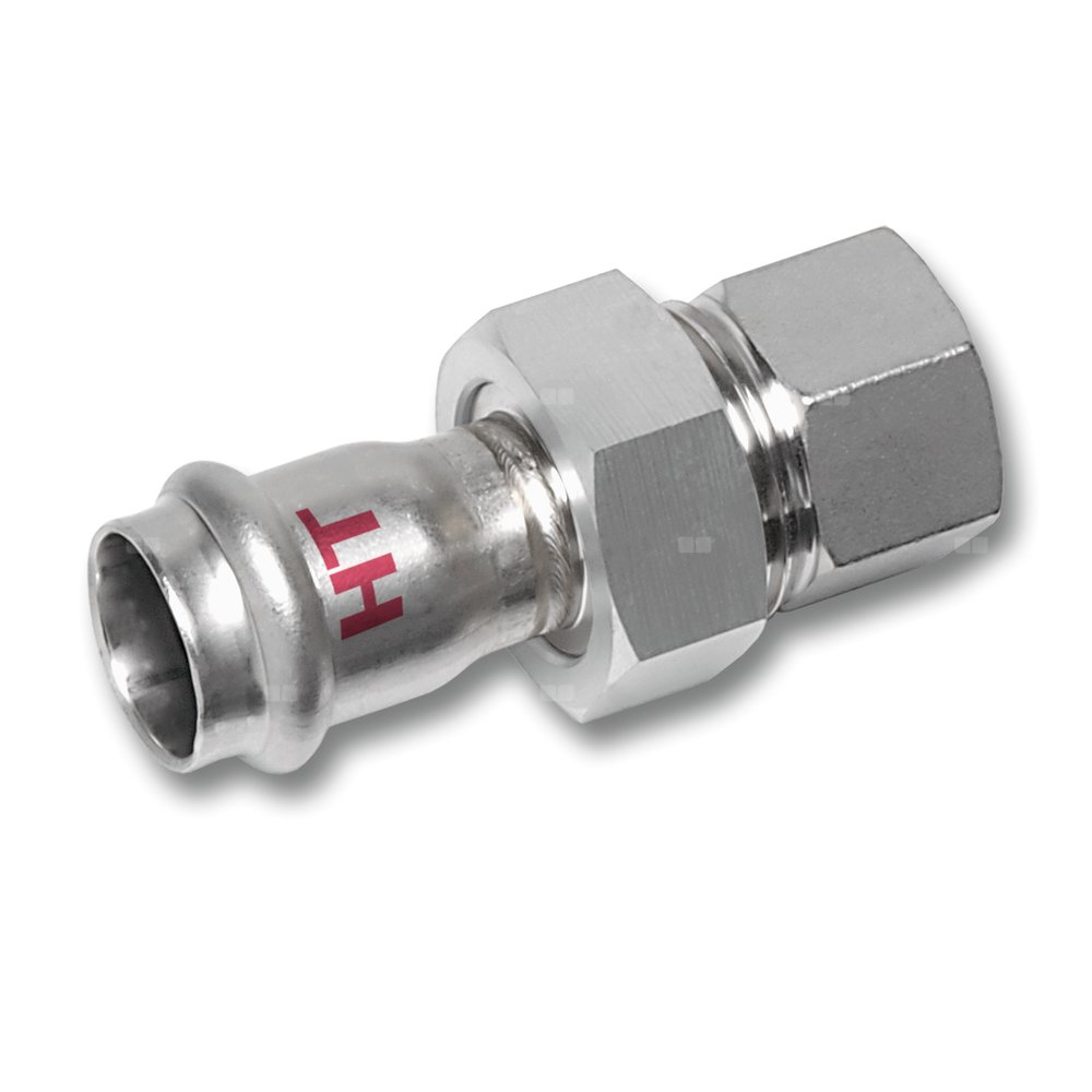 Śrubunek SANHA NiroSan Press Industry z uszczelką trzyczęściowy, stal nierdzewna, 22 mm x 1'' (zw x GW)