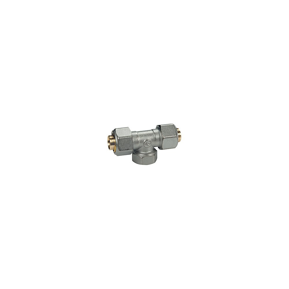 Trójnik GIACOMINI R569AM 90' mosiądz 18x2 x 1/2'' x 18x2 (końcówka wtykowa x GW x końcówka wtykowa), kolor chrom