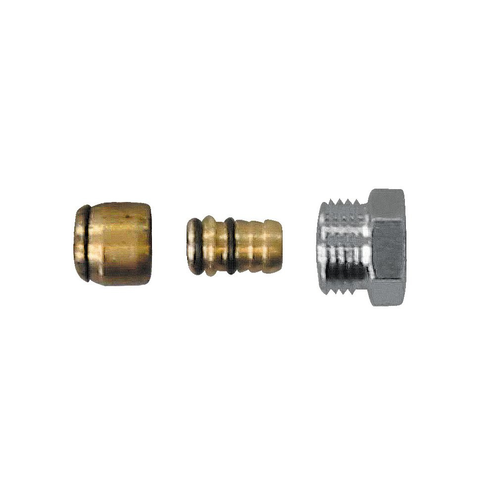 Złącze zaciskowe do rur z tworzywa sztucznego do rur PE-X, PB i rur wielowarstwowych z wkładką aluminiową. Komplet: tulejka, pierścień i wkrętka zaciskowa R1/2. Nadaje się wyłącznie do zaworów HERZ o szeregu „D", TS-7728, DE LUXE i RL 5.