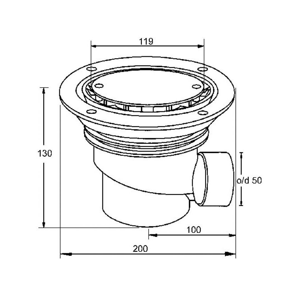Wpust podłogowy wykonany z ABS z odpływem 50mm, czyszczony od góry z kratką ze stali nierdzewnej120mm