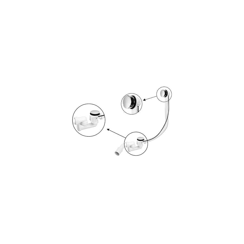Zestaw odpływowo-przelewowy do wanny i głębokiego brodzika z pokrętłem i korkiem umożliwiającym zamknięcie i otwarcie odpływu. Pokrętło wykonane z ABS. Odejście 1.1/2″x40/50mm. Możliwość czyszczenia przez boczną rewizję.