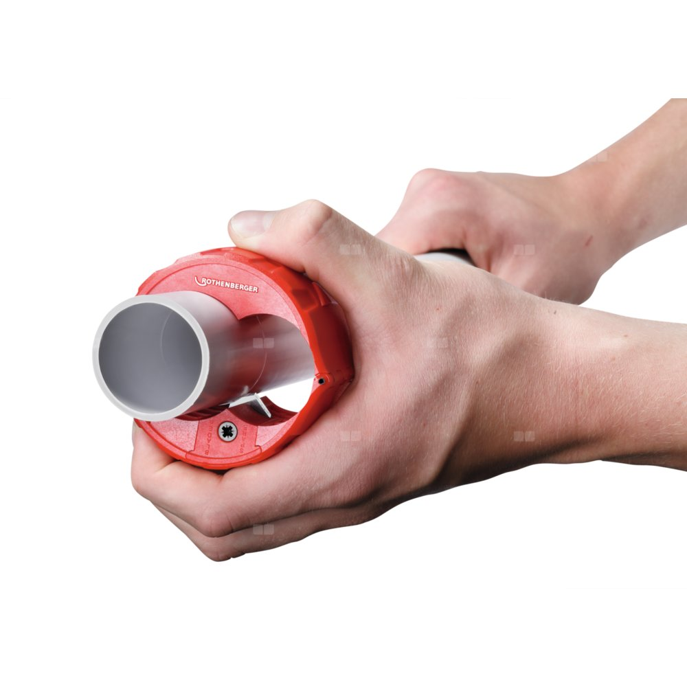Obcinak do rur ROCUT Plastic Pro tnie rury z PE, PP i PVC w rozmiarze 32-40 mm. Tnie rury pod kątem prostym, szybko i przy pomocy zaledwie kilku obrotów.