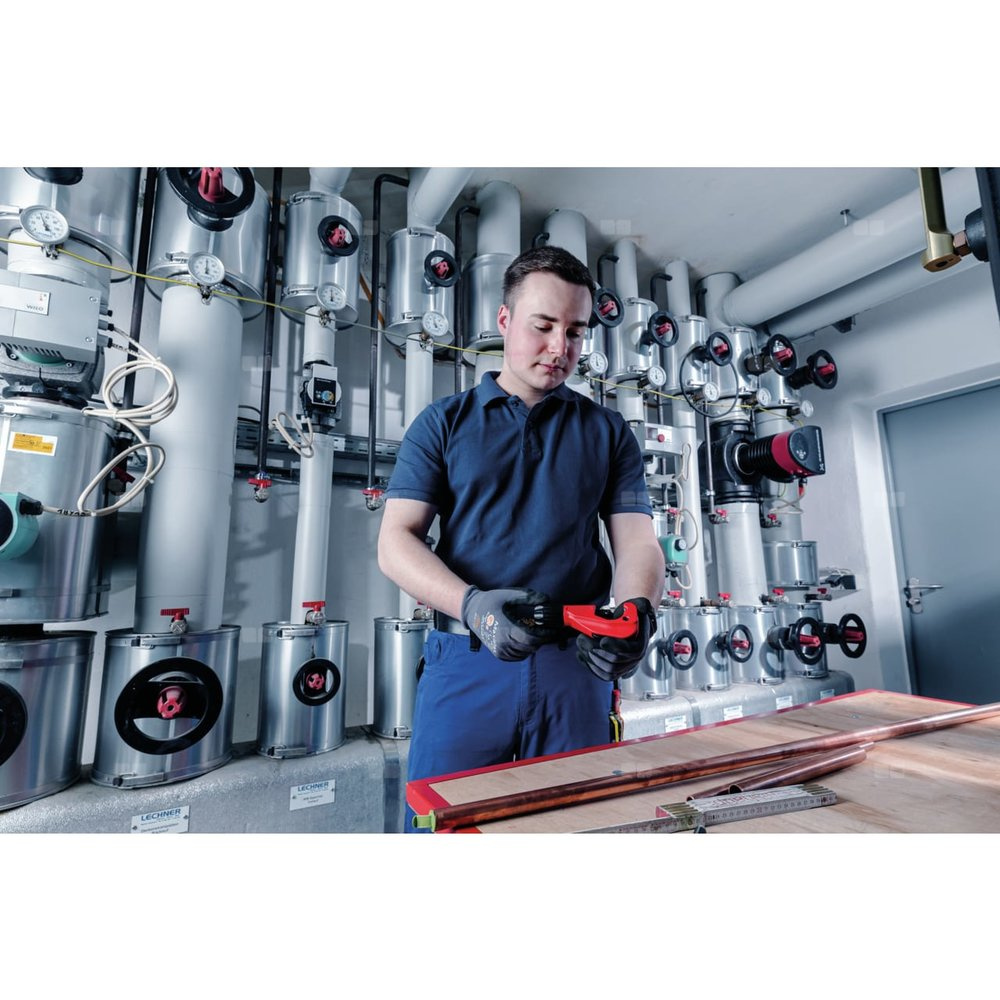 Za pomocą TUBE CUTTER 35 można bez wysiłku ciąć rury miedziane, mosiężne, aluminiowe i cienkościenne stalowe o średnicy 6-35 mm w celu przygotowania połączenia rurowego. Chowany wewnętrzny gratownik do rur i zapasowe kółko tnące w rękojeści pozwalają na ciągłą pracę.