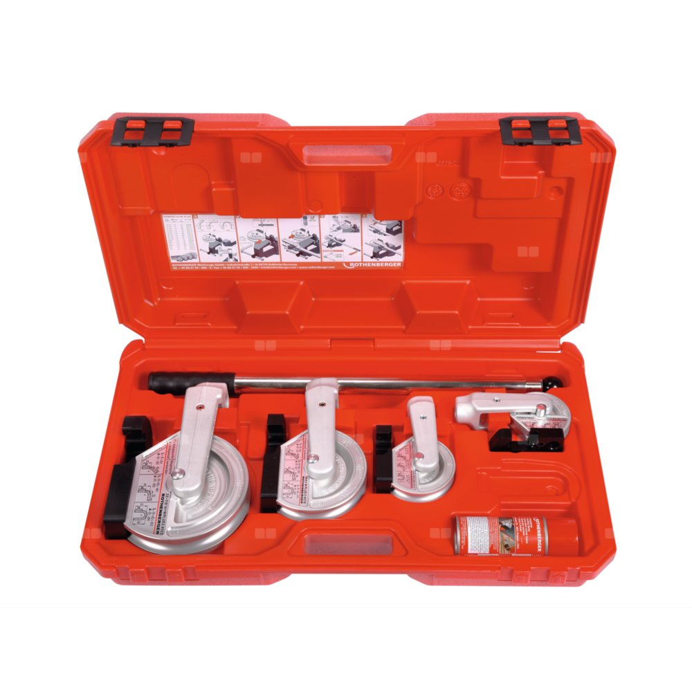 Do dokładnego gięcia na zimno do 180° rur wykonanych z miękkiej, półtwardej i twardej miedzi, również cienkościenne, miedzi w otulinie, cienkościenne aluminium, mosiądzu, stali, stali nierdzewnej. Zakres giecia 10- 12-15-18-22 mm, 1/2", 5/8", 3/4", 7/8".