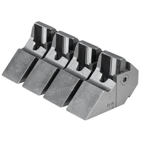 Niezawodne, umożliwiające kolejne ostrzenia styczne grzebieniowe noże gwintujące z optymalną geometrią cięcia gwarantują bardzo lekkie wejście w materiał, gwintowanie i czyste gwinty. WS grzebieniowe noże gwintujące z ciągliwo twardej specjalnie hartowanej stali dla materiałów < 500 N/mm² (MPa). HSS grzebieniowe noże gwintujące do ciężko skrawalnych materiałów ≥ 500 N/mm² (MPa). Wszystkie grzebieniowe noże gwintujące są przeznaczone dla jednego systemu mocowania. Noże i ich mocowania tworzą jeden zestaw gwintujący.