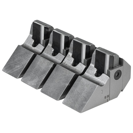 Niezawodne, umożliwiające kolejne ostrzenia styczne grzebieniowe noże gwintujące z optymalną geometrią cięcia gwarantują bardzo lekkie wejście w materiał, gwintowanie i czyste gwinty. WS grzebieniowe noże gwintujące z ciągliwo twardej specjalnie hartowanej stali dla materiałów < 500 N/mm² (MPa). HSS grzebieniowe noże gwintujące do ciężko skrawalnych materiałów ≥ 500 N/mm² (MPa). Wszystkie grzebieniowe noże gwintujące są przeznaczone dla jednego systemu mocowania. Noże i ich mocowania tworzą jeden zestaw gwintujący.