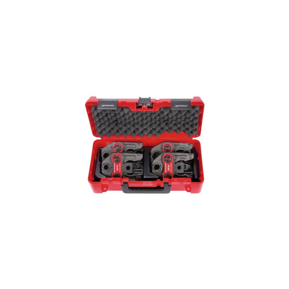 Szczęki zaciskowe ROTHENBERGER o sprawdzonej jakości materiału i wykonania nadają się do systemowego zaprasowywania złączek z metalu i tworzywa sztucznego. Technologia DURA LAZR TEC oraz częściowe hartowanie laserowe zapewniają bezpieczne i precyzyjne zaprasowywanie i jednocześnie zwiększają żywotność szczęk. Rezultatem jest minimalne zużycie i 100% więcej cykli zaprasowania w porównaniu z poprzednią wersją. Dzięki zastosowaniu bardzo odpornej stali specjalnej szczęki zaciskowe ROTHENBERGER nadają się do wszystkich zaciskarek o nacisku osiowym 32-34 kN. Ponadto specjalna, długotrwała ochrona antykorozyjna pomaga znacząco wydłużyć długość ich okresu eksploatacji.