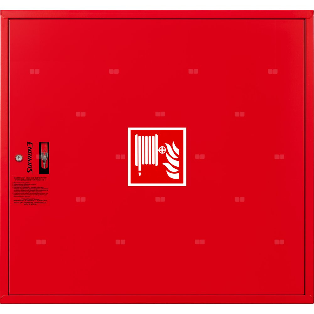 - szafka hydrantowa STANDARD wykonana z blachy czarnej malowanej farbą proszkową poliestrową fasadową typ Facade w kolorze czerwonym (RAL 3000) lub białym (RAL 9003), drzwi pełne; dzięki zastosowaniu zawiasu krytego drzwi szafki można otworzyć o 180°