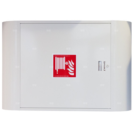 - szafka hydrantowa STANDARD wykonana z blachy czarnej malowanej farbą proszkową poliestrową fasadową typ Facade w kolorze czerwonym (RAL 3000) lub białym (RAL 9003), drzwi pełne; dzięki zastosowaniu zawiasu krytego drzwi szafki można otworzyć o 180°