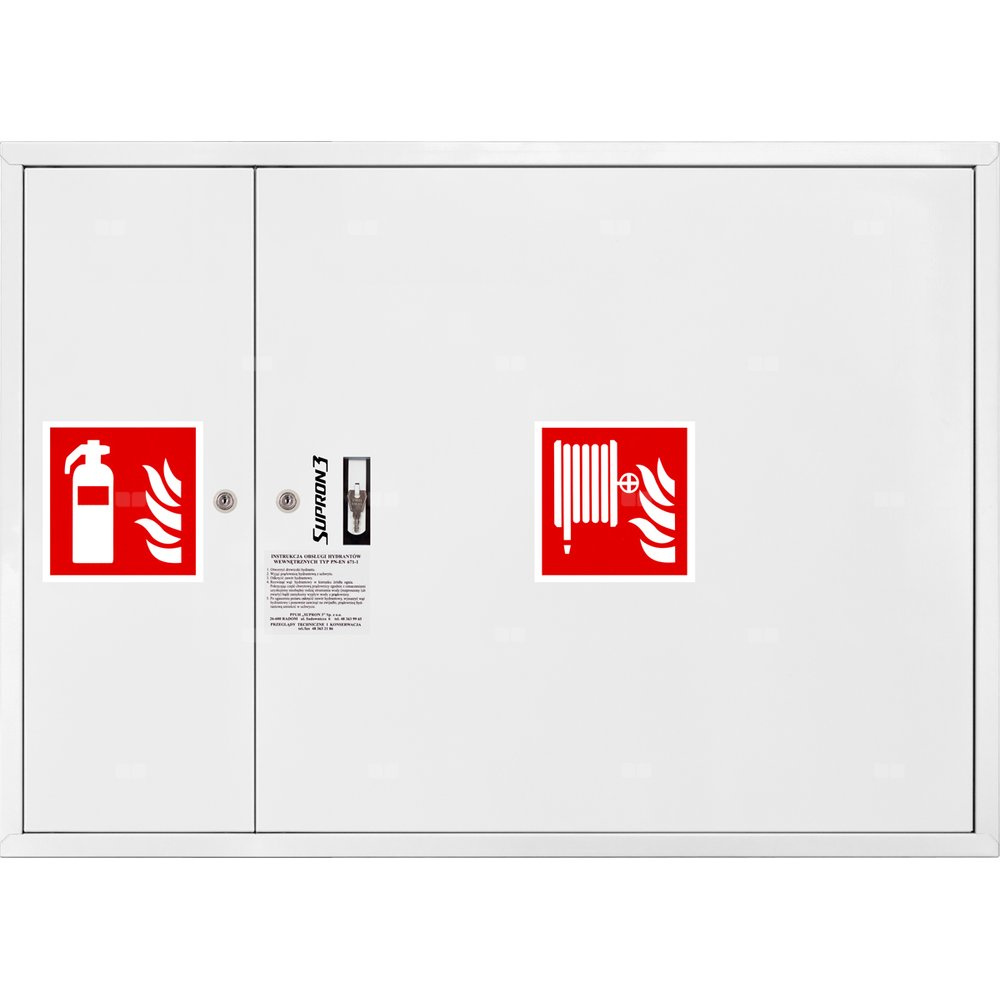 - szafka hydrantowa STANDARD wykonana z blachy czarnej malowanej farbą proszkową poliestrową fasadową typ Facade w kolorze czerwonym (RAL 3000) lub białym (RAL 9003), drzwi pełne; dzięki zastosowaniu zawiasu krytego drzwi szafki można otworzyć o 180°