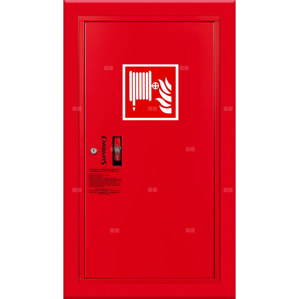 - szafka hydrantowa OCYNKOWANA wykonana z blachy stalowej ocynkowanej elektrolitycznie malowanej farbą proszkową poliestrową fasadową typu Facade w kolorze czerwonym (RAL 3000) lub białym (RAL 9003), drzwi pełne; dzięki zastosowaniu zawiasu krytego drzwi szafki można otworzyć o 180°