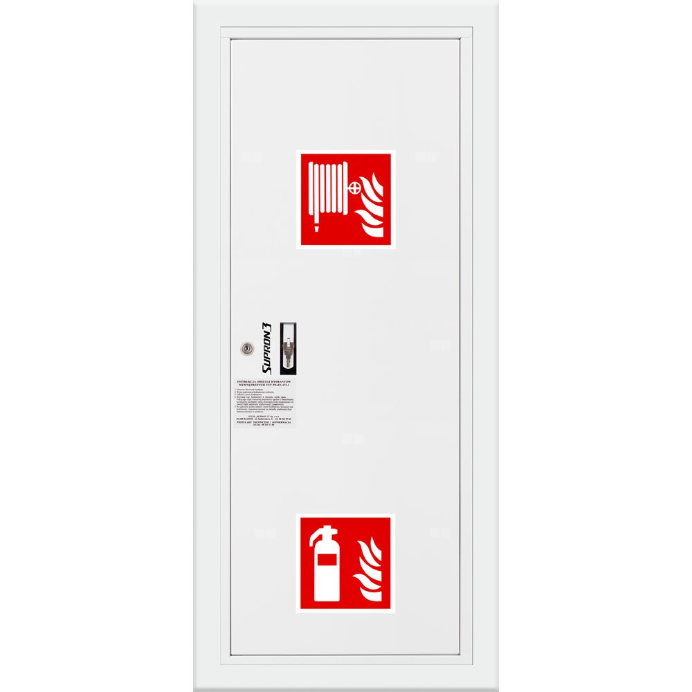 Hydrant DN 33 wnękowy boczny z miejscem na gaśnicę, wąż 30 m, ocynk fasada, zamek patent, RAL 9003 prawy